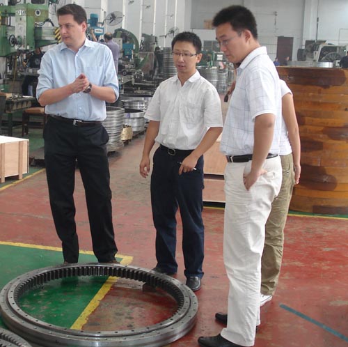 2008年9月16日奧地利客戶來公司考察,洽談轉(zhuǎn)盤軸承項目。